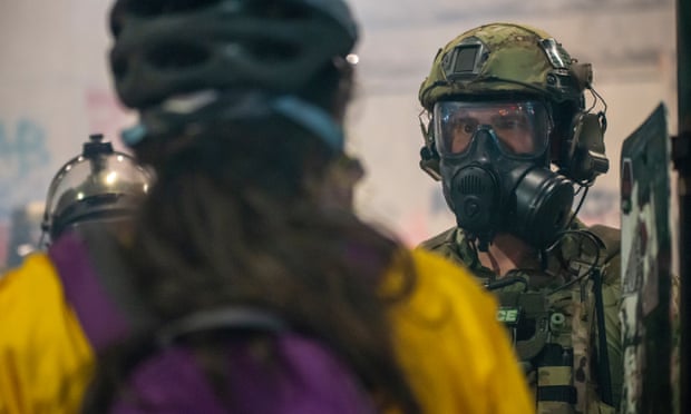 Department of Homeland Security taskforce agents were again out firing waves of teargas and throwing stun grenades against a hard core of a few hundred demonstrators in the early hours of Wednesday morning. The confrontation centered on the courthouse at the heart of several blocks of downtown Portland that have effectively fallen under the control of the protesters after the city police withdrew.